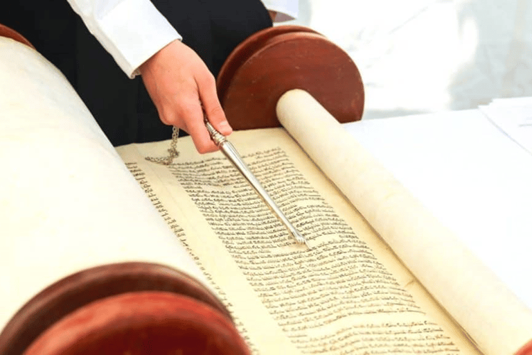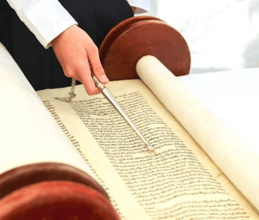 The reader will show you where the Torah reading begins and ends. Touch the beginning and end of the Torah reading with the corner of your tallit (or the Torah’s sash) and kiss it. Close the Torah and hold both handles while reciting the blessing.